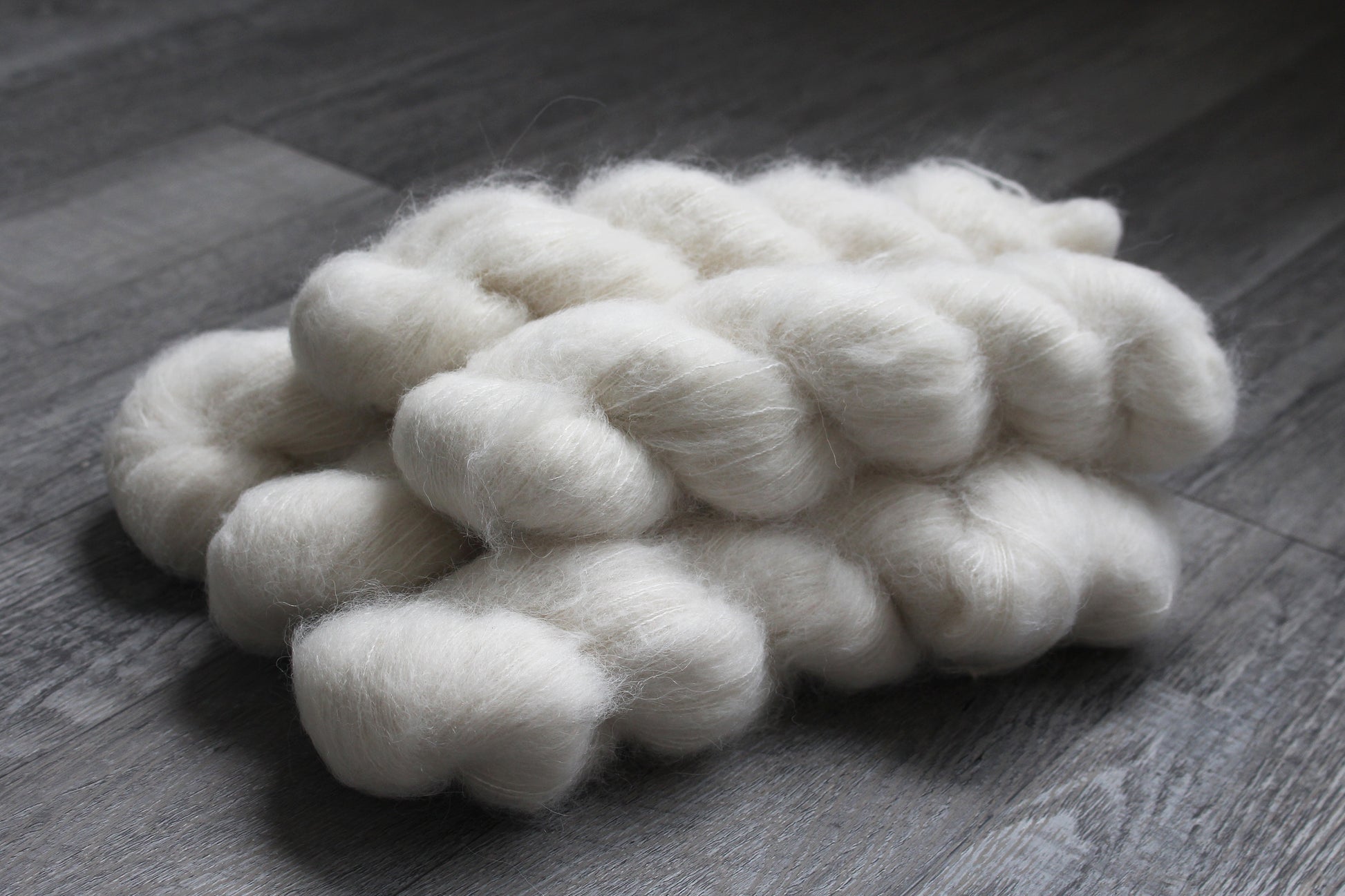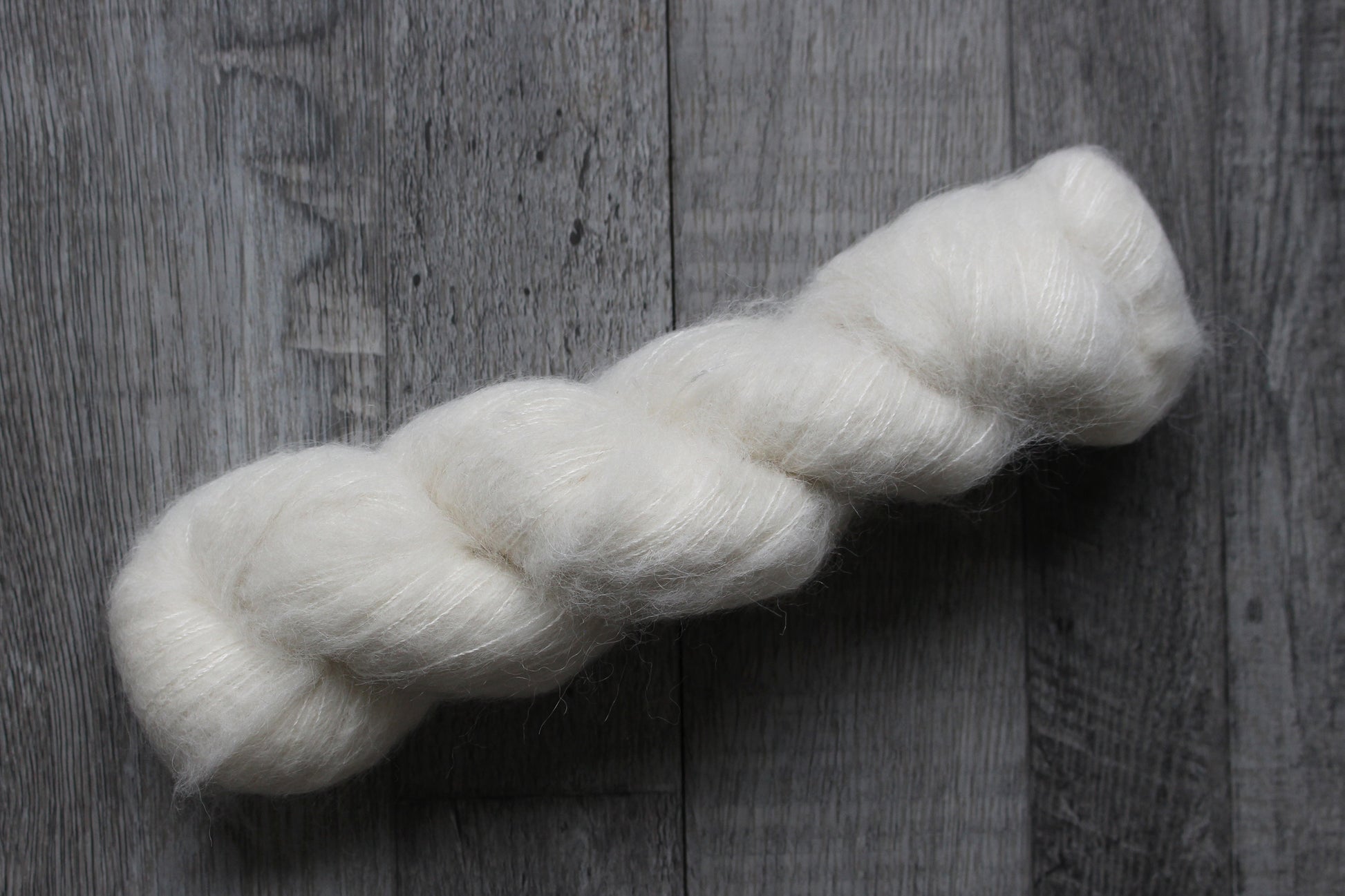 The brushed finish gives it a delicate halo, ideal for crafting lightweight garments and accessories that feel feather-soft against the skin. Perfect for sweaters, scarves, shawls, and more, this yarn drapes beautifully and offers a touch of understated luxury to every project.