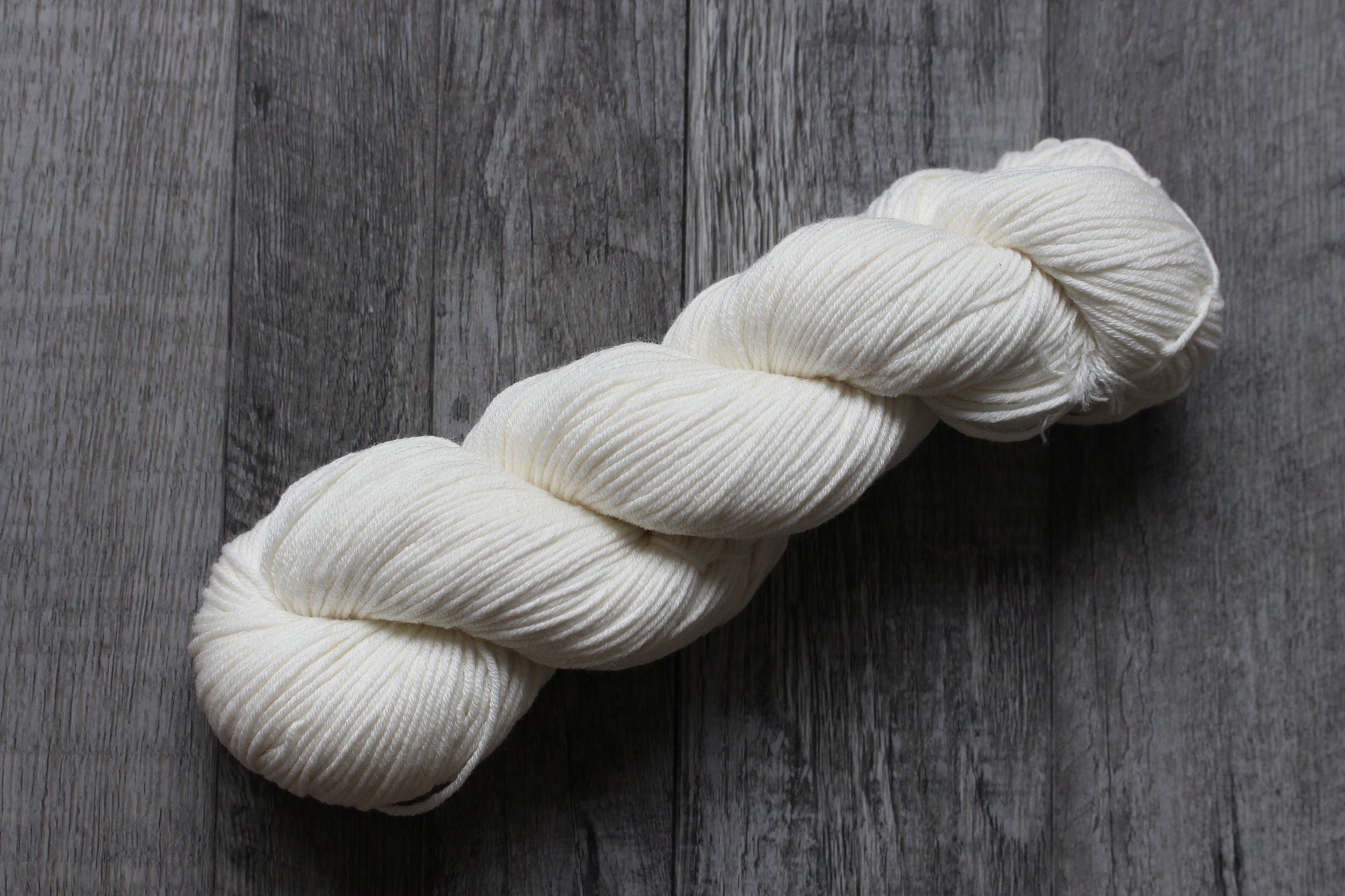 The undyed multi-thread Superwash Merino Wool and Cotton blend yarn is plied seven fine 2 ply yarns, this construction makes the yarn light and elasticity.The nature fiber Wool and Cotton combination is perfect for baby projects.
