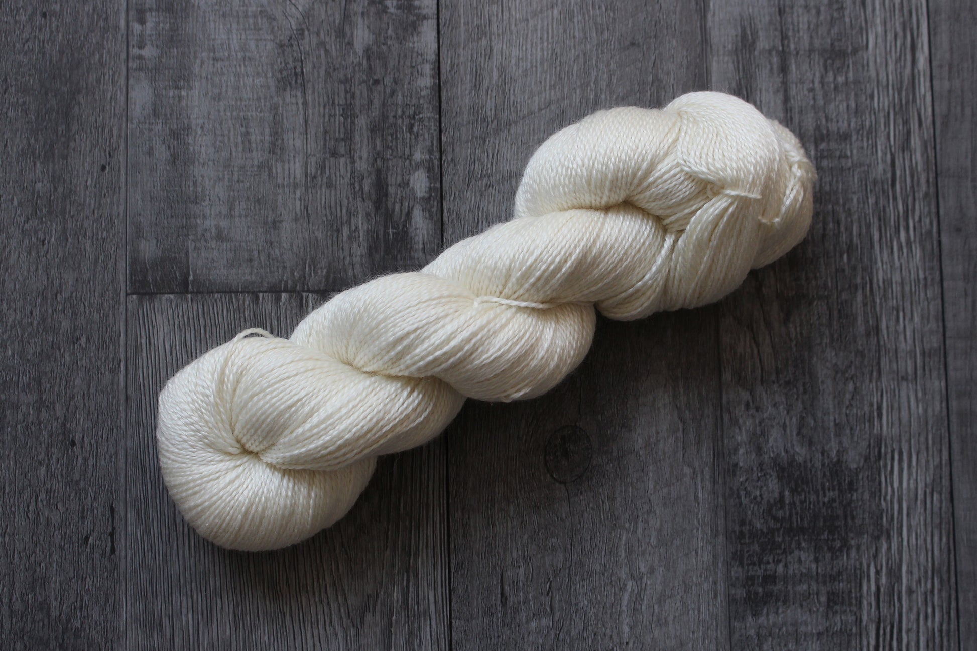The Fingering weight 2 Ply Superwash Merino Wool and Silk Blender yarn has a gorgeous sheen and a next-to-skin soft.