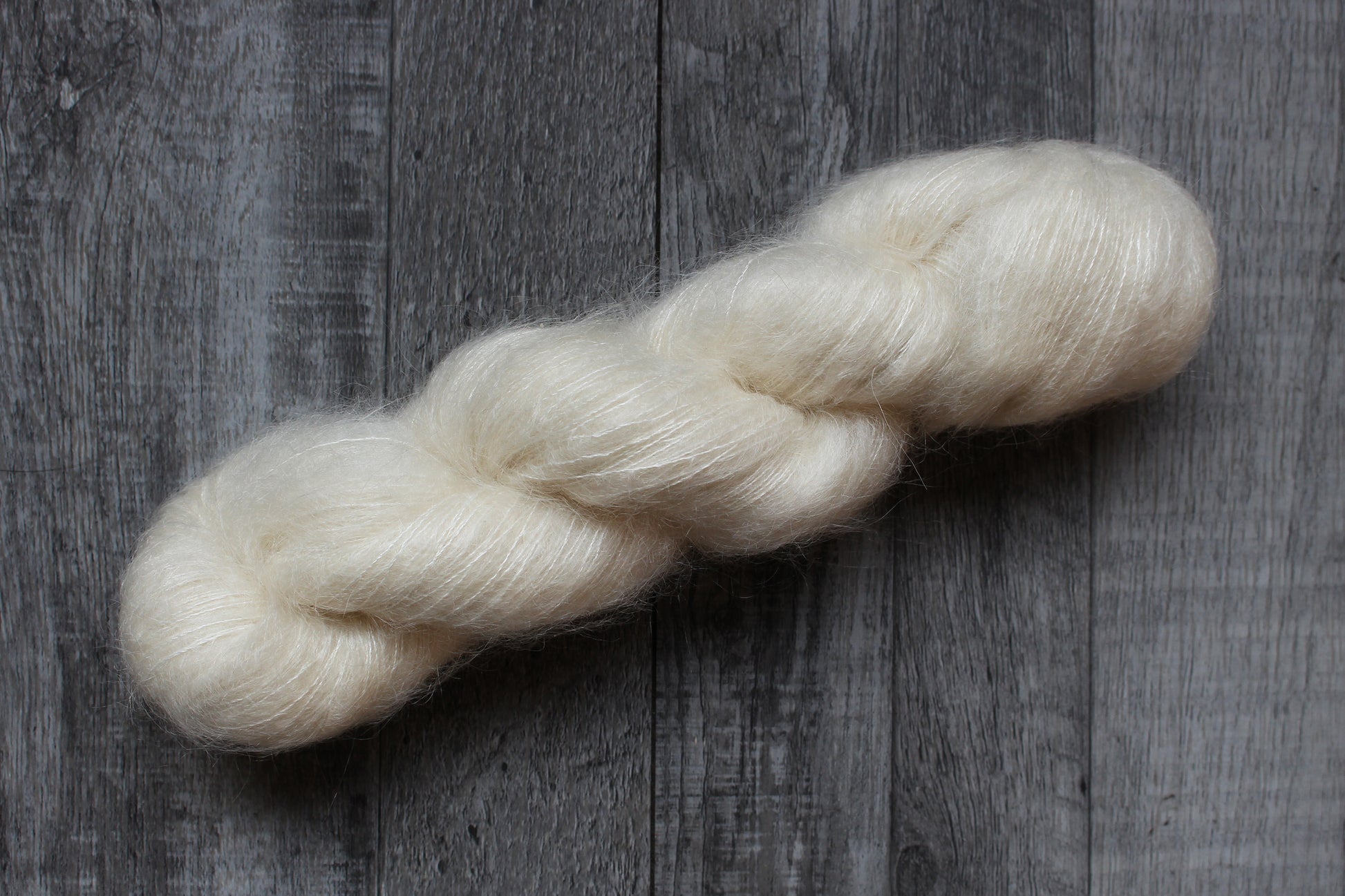 Soft, airy, and elegant — this DK weight yarn is a dreamy blend of 75% Kid Mohair and 25% Silk. Perfect for lightweight shawls, layering pieces, or adding a soft halo when held with another single thread, such as our single-ply superwash merino wool yarn (W-161).
