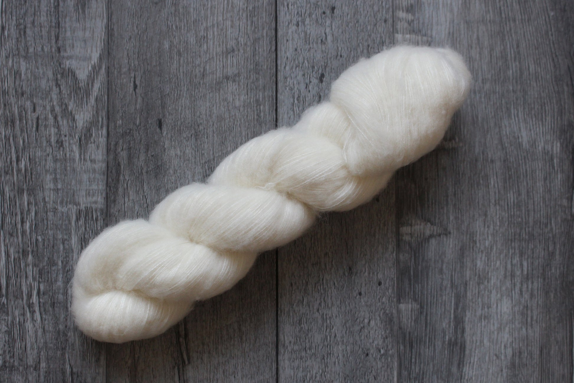 The lace weight brushed yarn is light and airy, the Wool and Silk blender yarn is perfect for shawls.